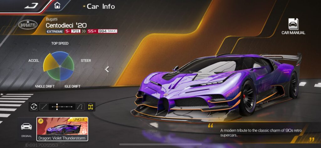 To understand the excitement, one must look at the real Centodieci. Bugatti built this car to celebrate its 110th anniversary, producing only ten units worldwide. It carries an 8.0-liter W16 engine that delivers 1,600 horsepower. With this, the car reaches 100 km/h in just 2.4 seconds. The design merges classic Bugatti DNA with cutting-edge aerodynamics, creating a futuristic silhouette. Its limited production and price tag of over $8 million make it nearly impossible to own. By adding the Centodieci, Racing Master gives players a once-in-a-lifetime chance to experience its greatness. The game transforms exclusivity into accessibility, allowing gamers to feel the thrill of driving an icon usually reserved for the world’s elite.